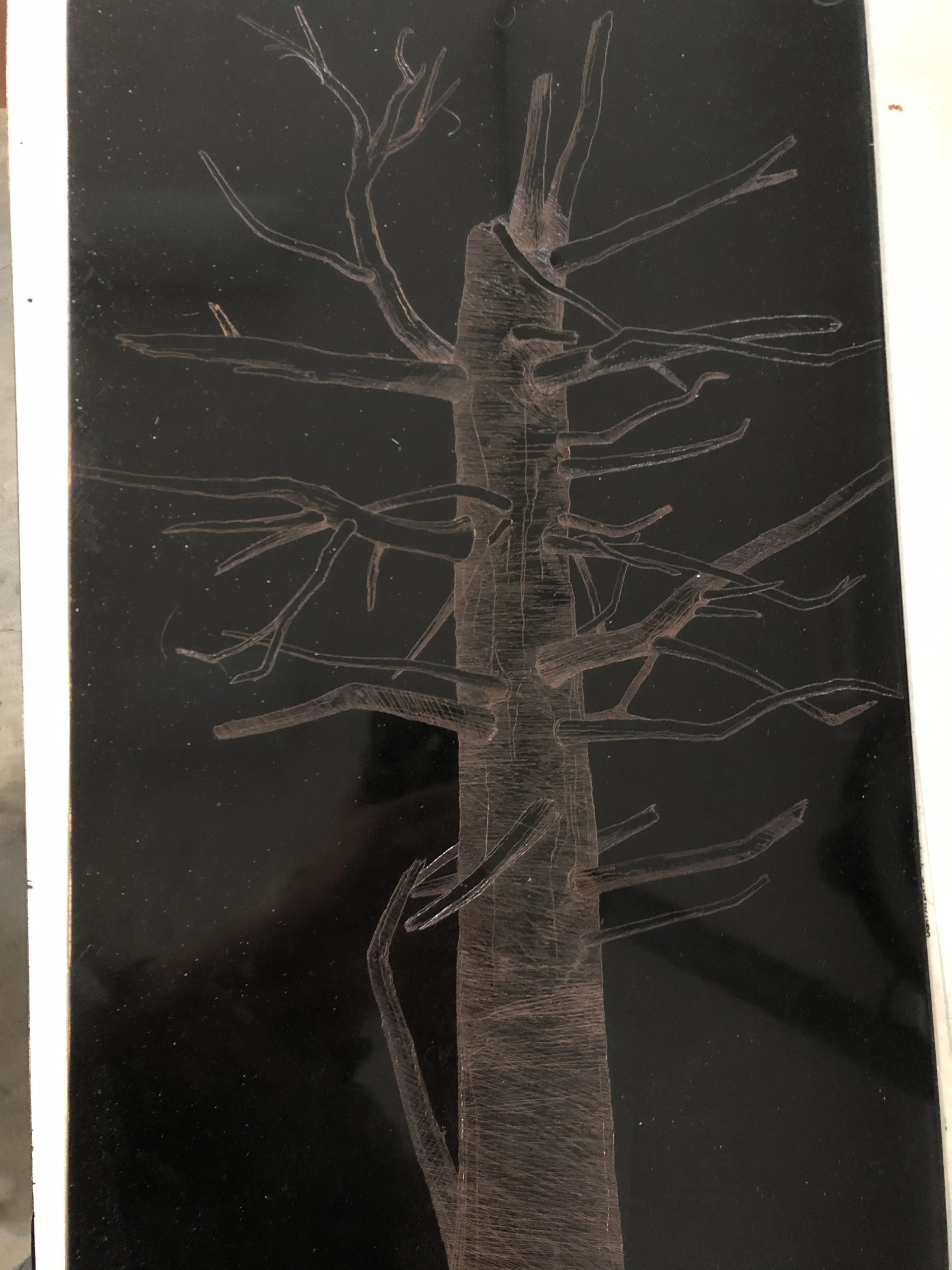 Tree Etching & Green Tree Drawing